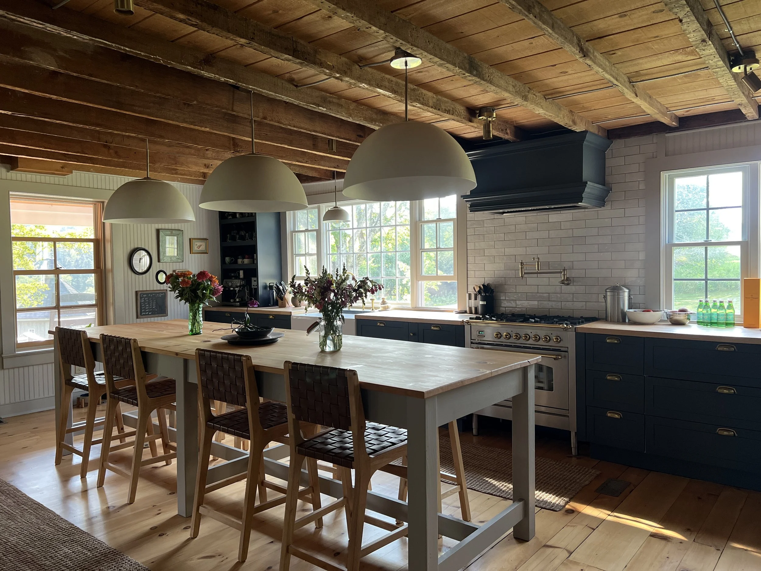 At the heart of the new kitchen is a 12-foot handcrafted utility table, built by Catskill Farmhouse, the millwork branch of Christienne Dobson Design. It provides generous countertop space for prep work, casual meals, or large gatherings and feels like a natural extension of the original house.